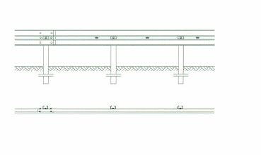 מעקה פלדה חד-צדדי, בגובה 73 ס"מ, רוחב 14 ס"מ, ציפוף עמודים – 1.33מ',