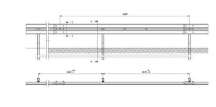 למעקה עמודי C באורך 1.6 מ', בתוספת אלמנט חיזוק עם פרופיל U באורך 25 ס"מ  , 15 ס"מ מעל לקרקע , קורה דו-גלית שטוחה, ורכיבי חיבור.