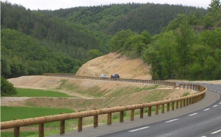 ציפוף עמודים 2.0 מ'. למעקה עמודי C בחיפוי עץ, קורת פלדה בחיפוי עץ,